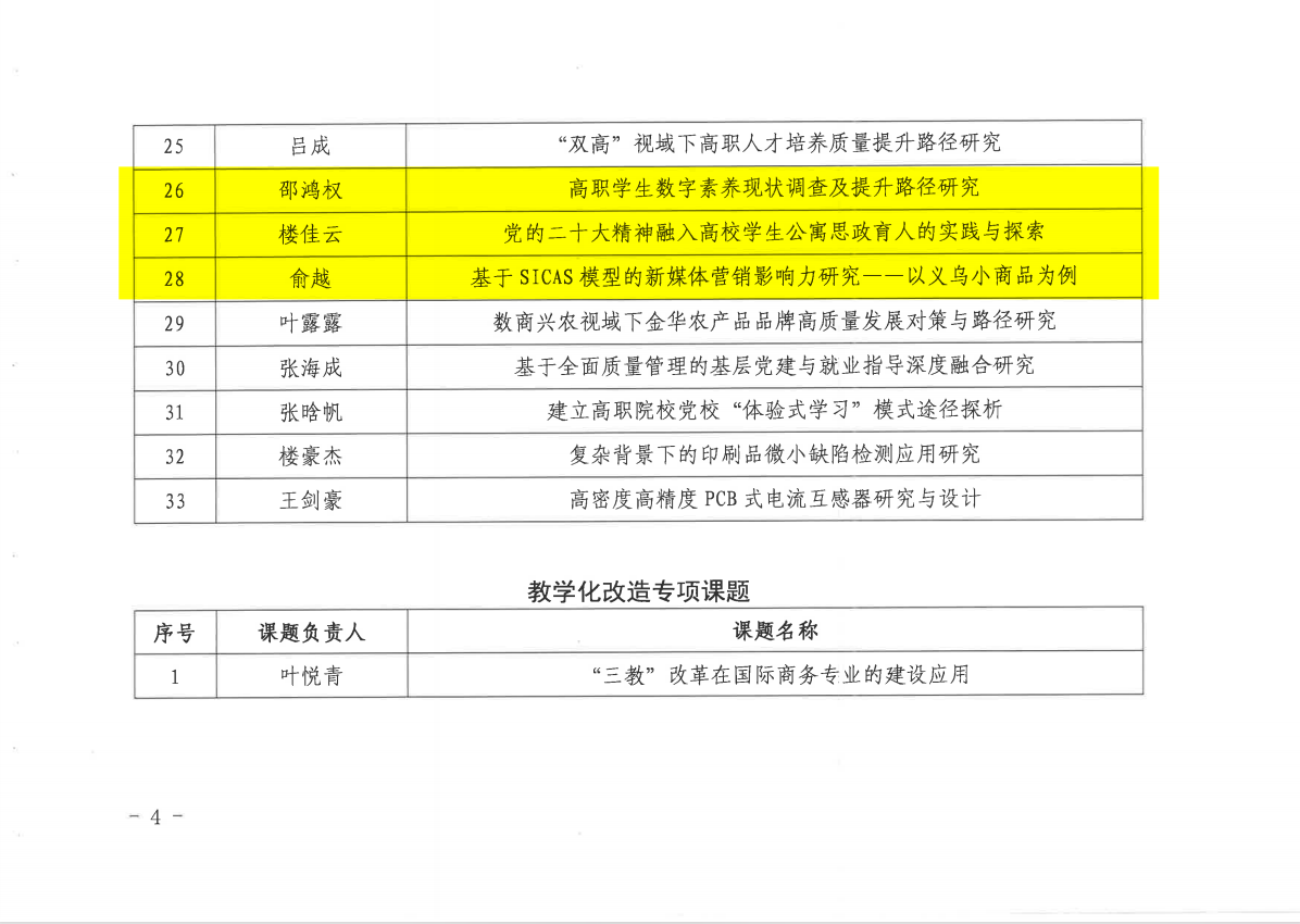 【结题通知】关于公布2023年下半年义乌工商职业技术学院校级课题结题结果的通知