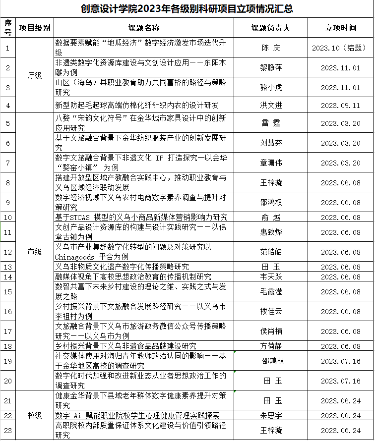 【结题通知】关于公布2023年下半年义乌工商职业技术学院校级课题结题结果的通知