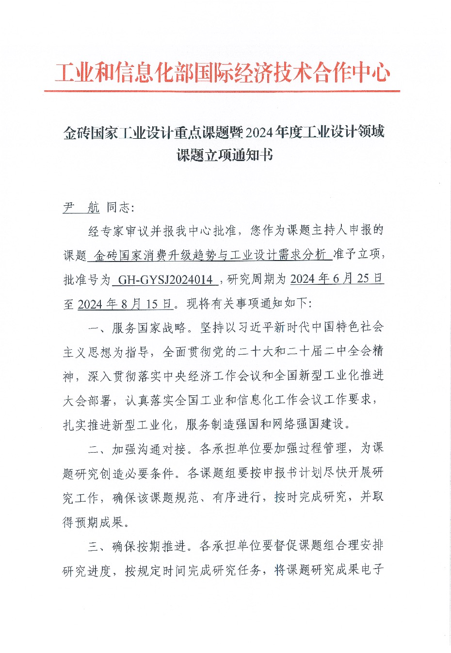 【立项通知】我院尹航老师成功立项工业和信息化部国际经济技术合作中心重点课题