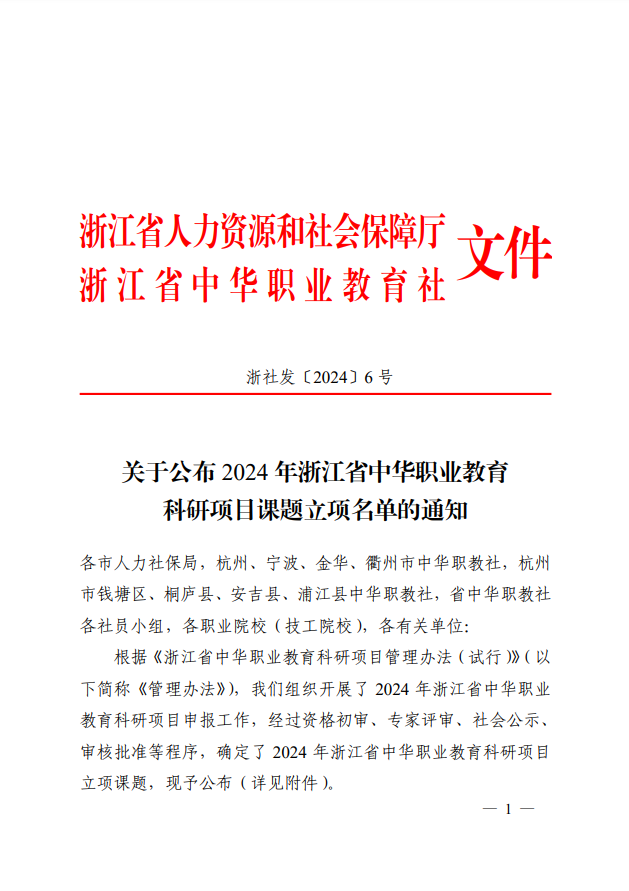 【立项通知】久久久久久久久免费看无码成功立项2024年浙江省中华职业教育科研项目课题1项