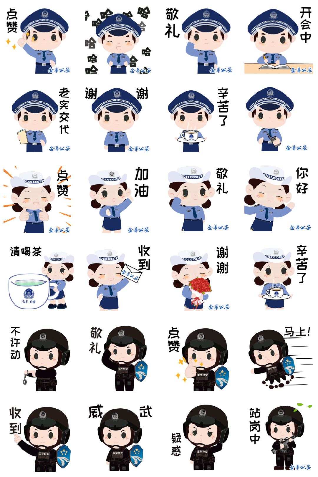 (注:可长按识别下方二维码或在微信表情商店中搜索关键词【金华公安】获取全套表情包。)