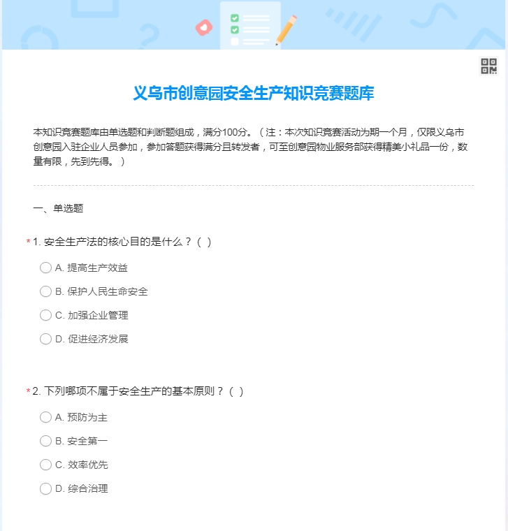 【安全生产月】义乌市创意园安全生产知识竞赛题