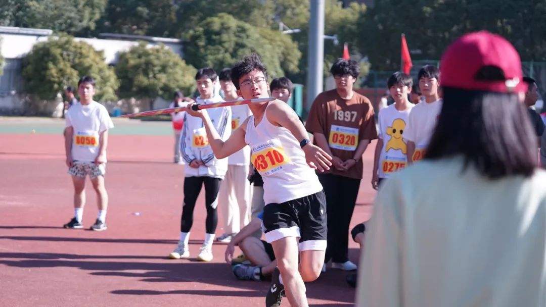 标枪凌空似长矛,竹板轻击如鼓角;风卷长歌入场来,少年昭昭胜朝朝。
