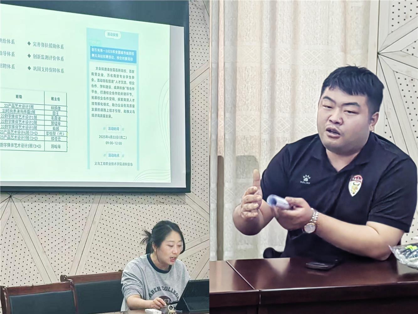 1、强化政策引领,构建就业服务新格局会议重点解读国家关于高校毕业生就业工作指导文件,强调要立足产业端人才需求与就业端评价反馈双轮驱动,建立"招生-培养-就业"全链条联动机制。针对当前就业形势,明确建立"一人一档"精准帮扶台账,对9名重点关注学生实施个性化就业援助;同步推进校企协同育人,组织师生参加4月22日"职引未来—2025年全国城市巡回招聘义乌站"系列活动,深化产教融合实践。