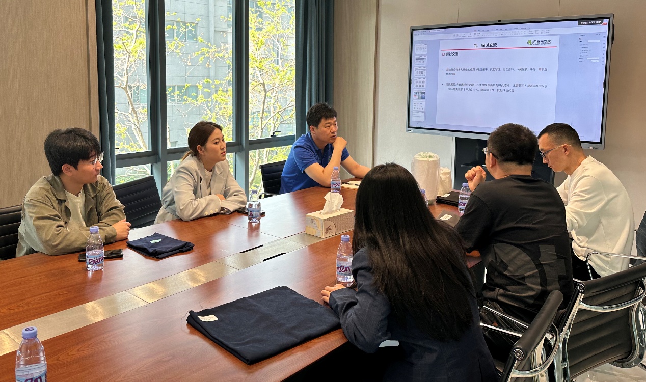 图2:学生团队与中国纺织科学研究院纳米材料研究团队研讨运动功能性纱线