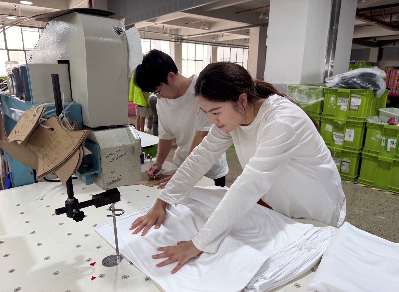 图1:学生团队研究功能性纱线在无缝针织户外运动服装的应用