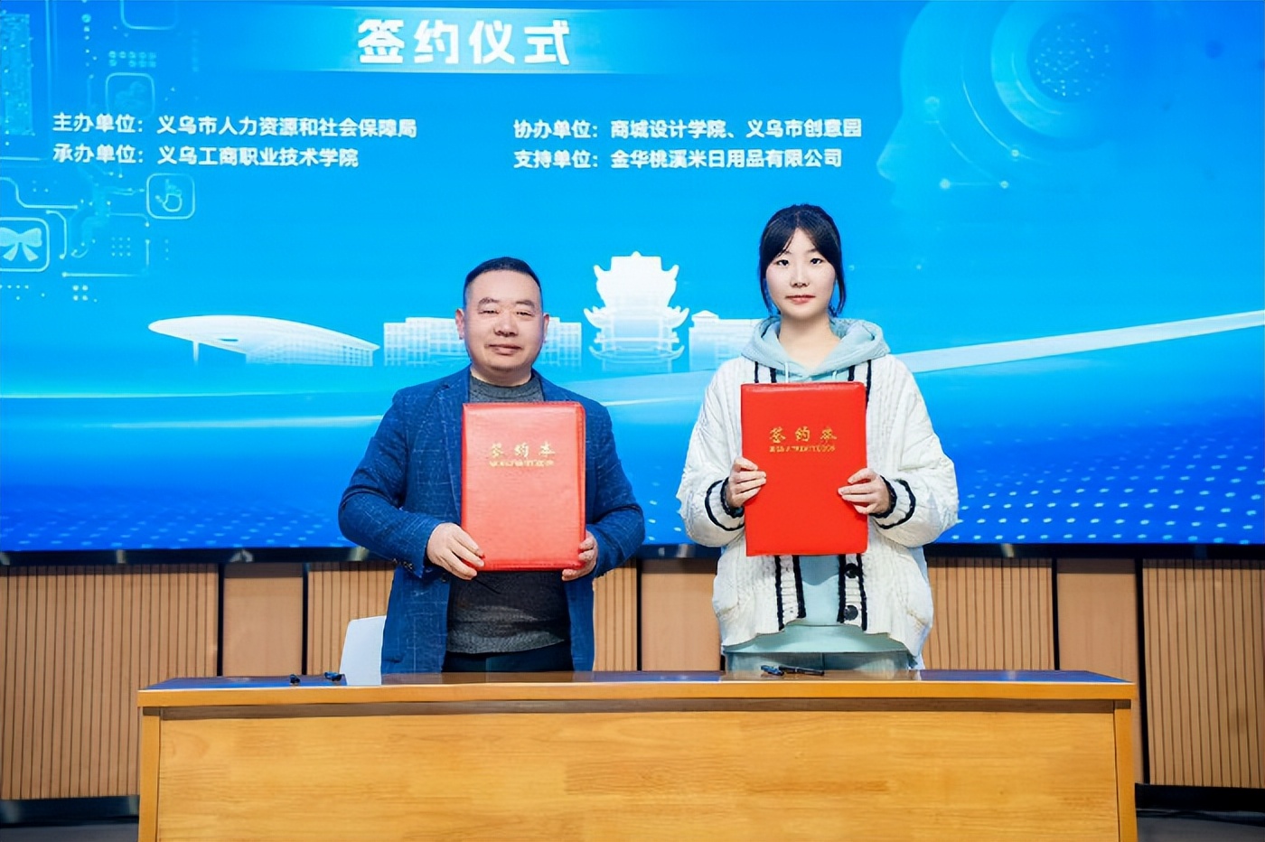 本次大赛分为初赛、复赛、决赛三个阶段,大赛征集得到了社会各界的广泛关注和支持,初赛共收到235个创业项目,经过初赛和复赛的专家组遴选,有18个项目进入大赛的最终决赛现场。决赛采用“3+2”互动答辩模式(3分钟作品宣讲/展示+2分钟专家问答)。选手以演示文档与视频相结合的形式向评委表达项目设计的理念、创业计划及项目亮点等,再由专家对项目进行评估并现场评分。决赛展示了参赛选手利用AIGC(人工智能生成内容)技术进行创业的模式和理念,展现了选手的精彩表现。路演结束后,“义乌文创冰箱贴”和“AI智能健康监测镜”两个项目受到了义乌福韵科技有限公司和义乌桃溪米新材料有限公司的青睐,进行了现场的项目落地签约。签约仪式后,现场揭晓了本次大赛的获奖名单,并由现场的嘉宾和领导进行了隆重的颁奖。