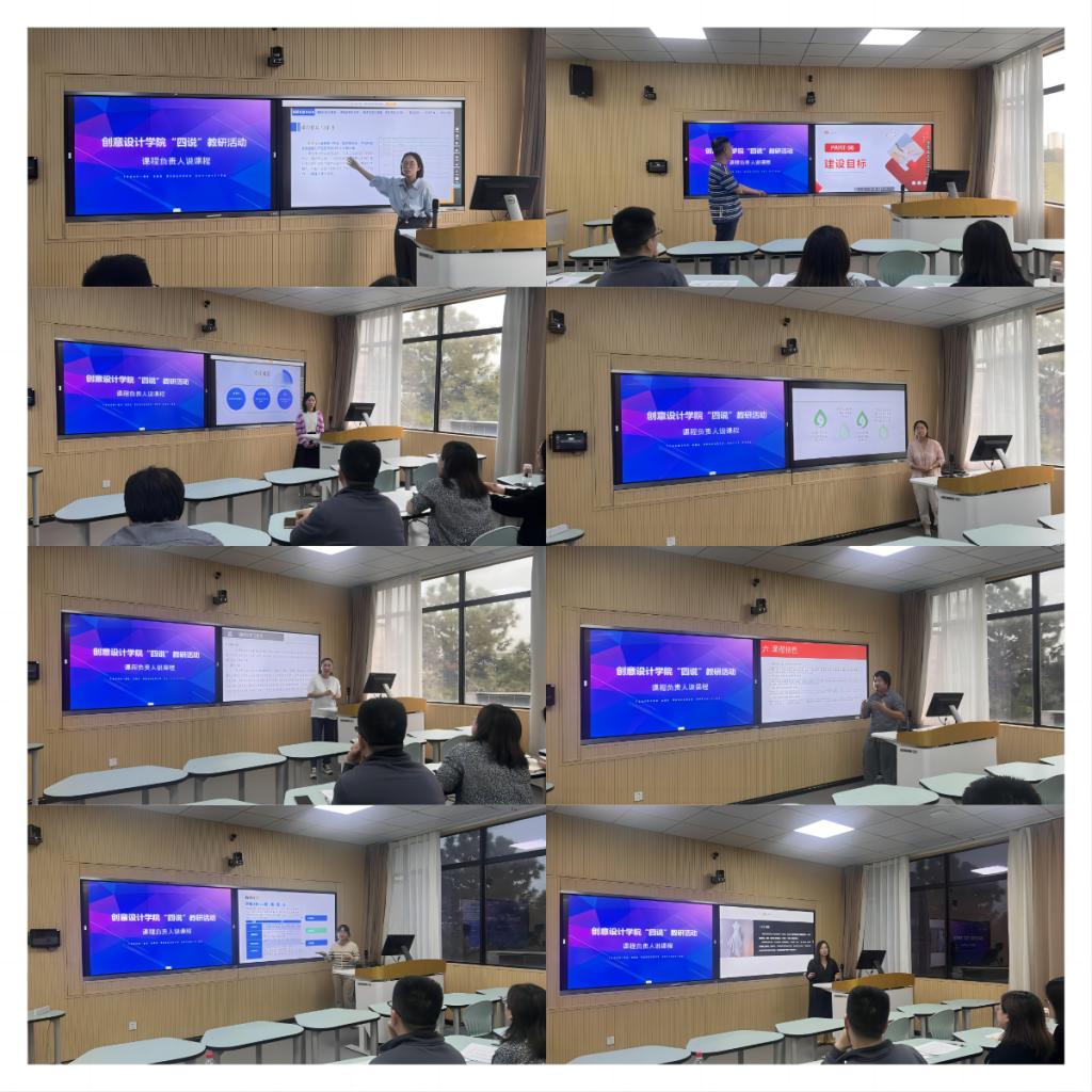 活动现场,我院产品艺术设计专业、服装与服饰设计专业、数字媒体艺术设计专业、时尚表演与传播专业的课程负责人分别就各自的课程进行了详细的阐述,分别从课程性质与任务、课程目标与要求、课程结构与内容、学生考核与评价、教学实施与保障、课程特色、资源开发以及建设目标等八个方面进行了图文结合的深入剖析。并对自己课程授课以来所总结的经验和课程改革创新之处与现场老师们展开了积极的交流和热烈的讨论。